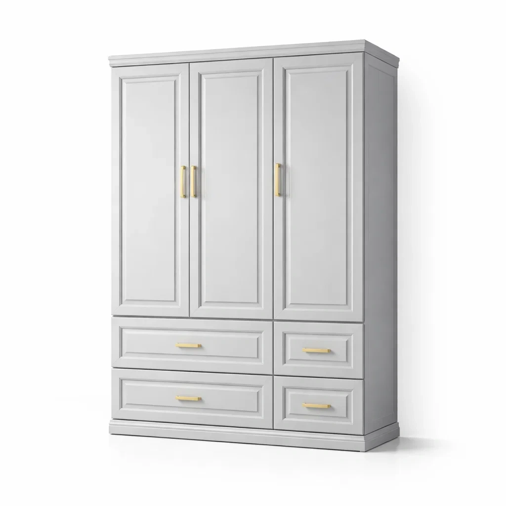 Armoire MDF Trois Portes Blanc avec Poignées Dorées
