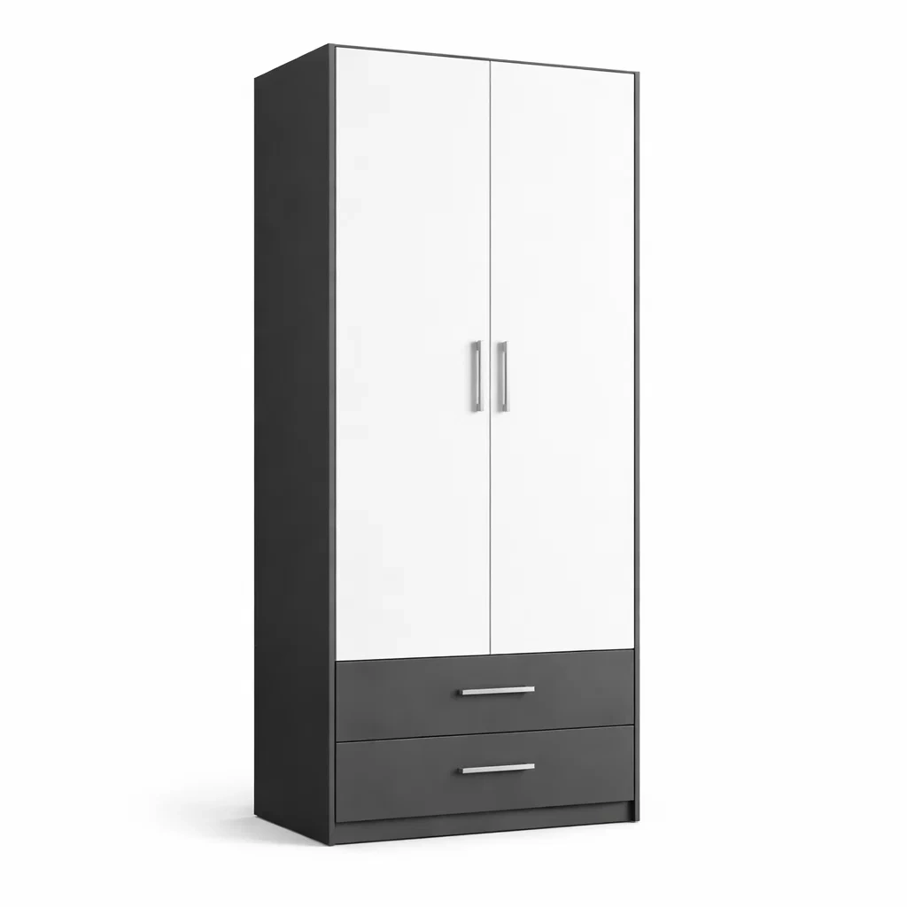 Armoire en Bois Composite 2 Portes 2 Tiroirs Blanc et Gris