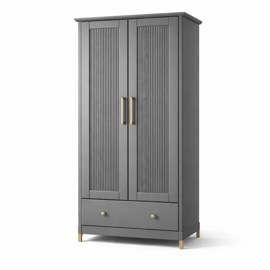 Armoire en Bois avec Portes Battantes et Tiroirs Blanc Gris