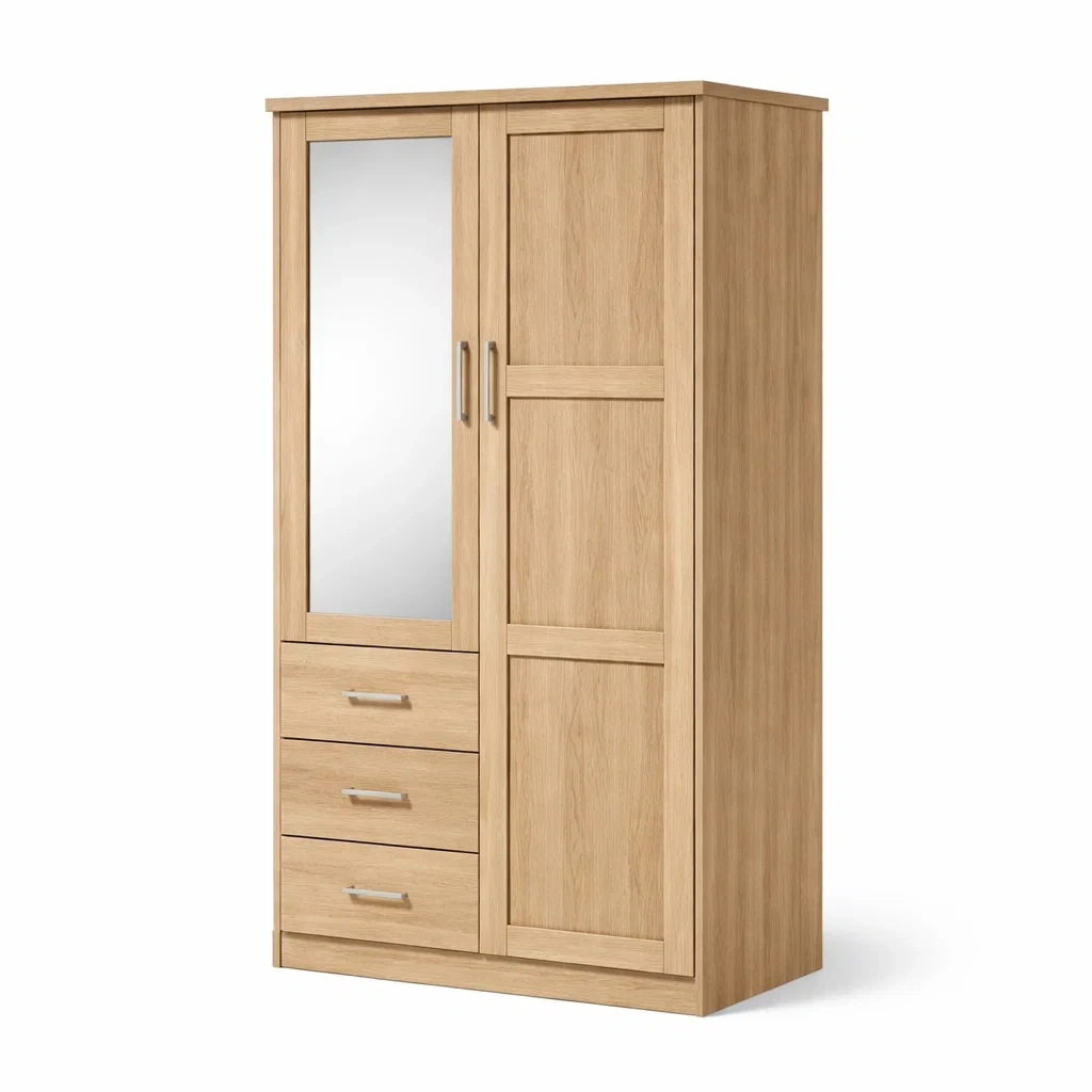 Armoire en Bois avec 2 Portes et Tiroirs en Chêne Clair 180x80x50 cm