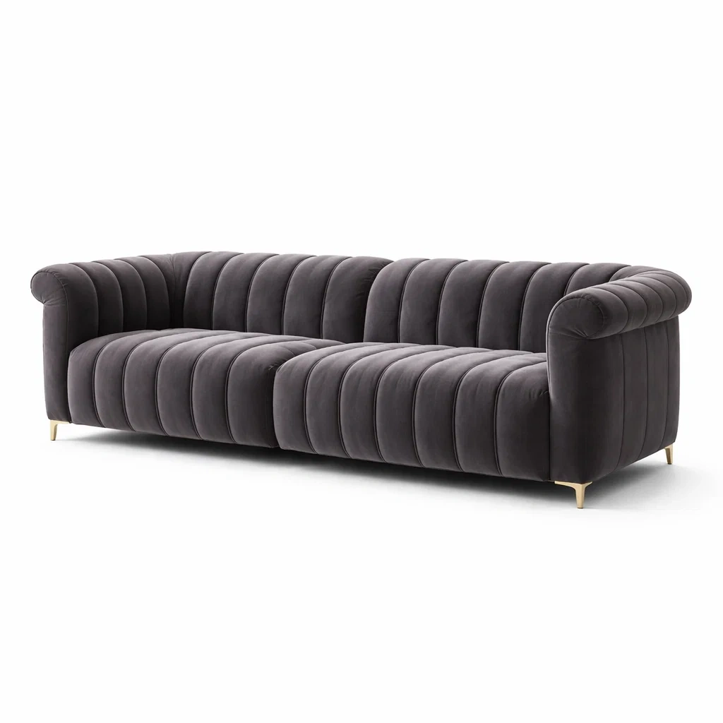 Canapé 3 places en velours gris foncé avec pieds dorés