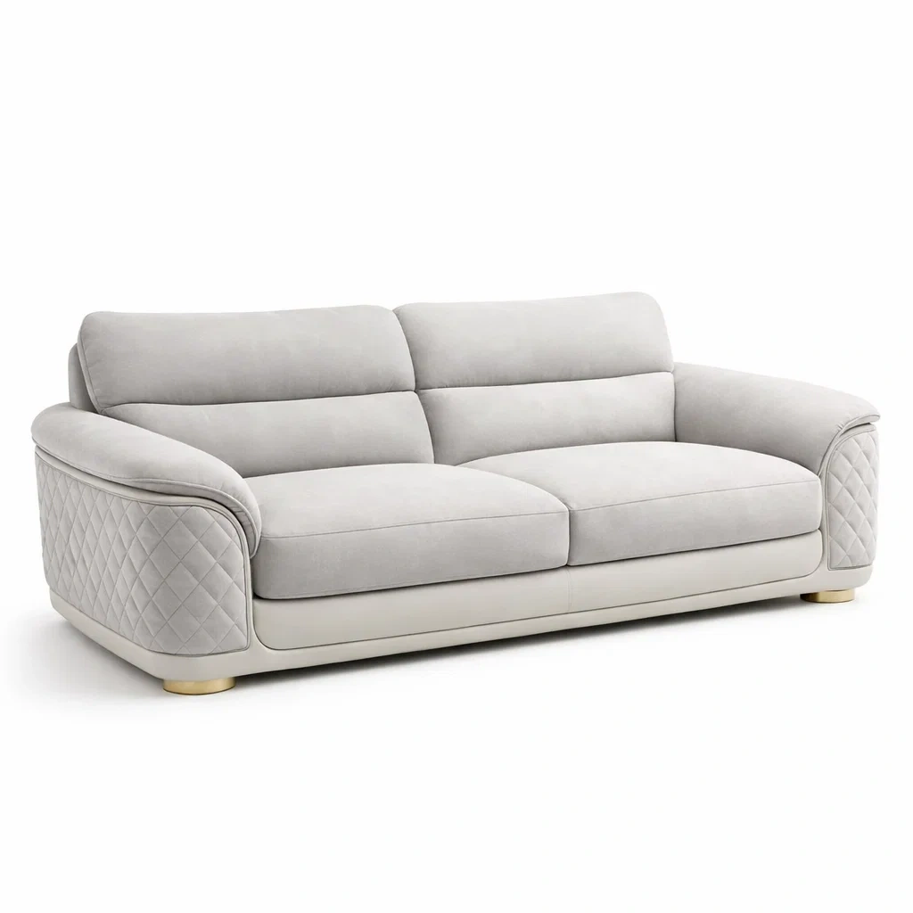 Canapé 3 places en bois et tissu gris clair