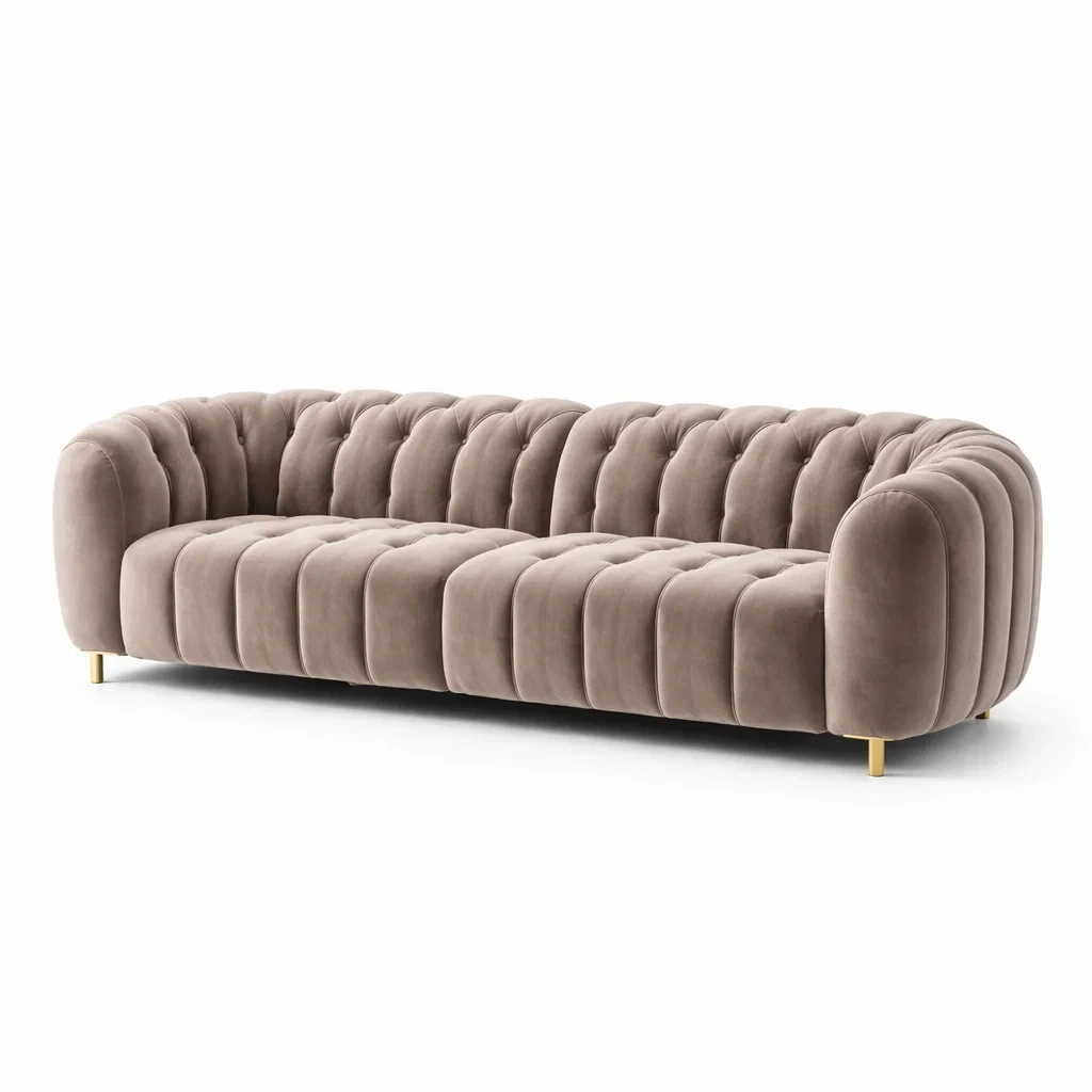Ce canapé en velours polyester est doté d'une structure robuste et un design moderne avec des pieds en métal doré. La mousse de rembourrage offre un confort optimal.