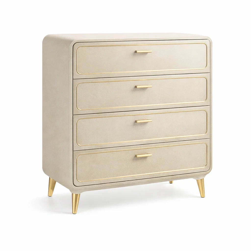 Matériau : Panneaux MDF avec finitions en cuir synthétique et poignées en métal doré