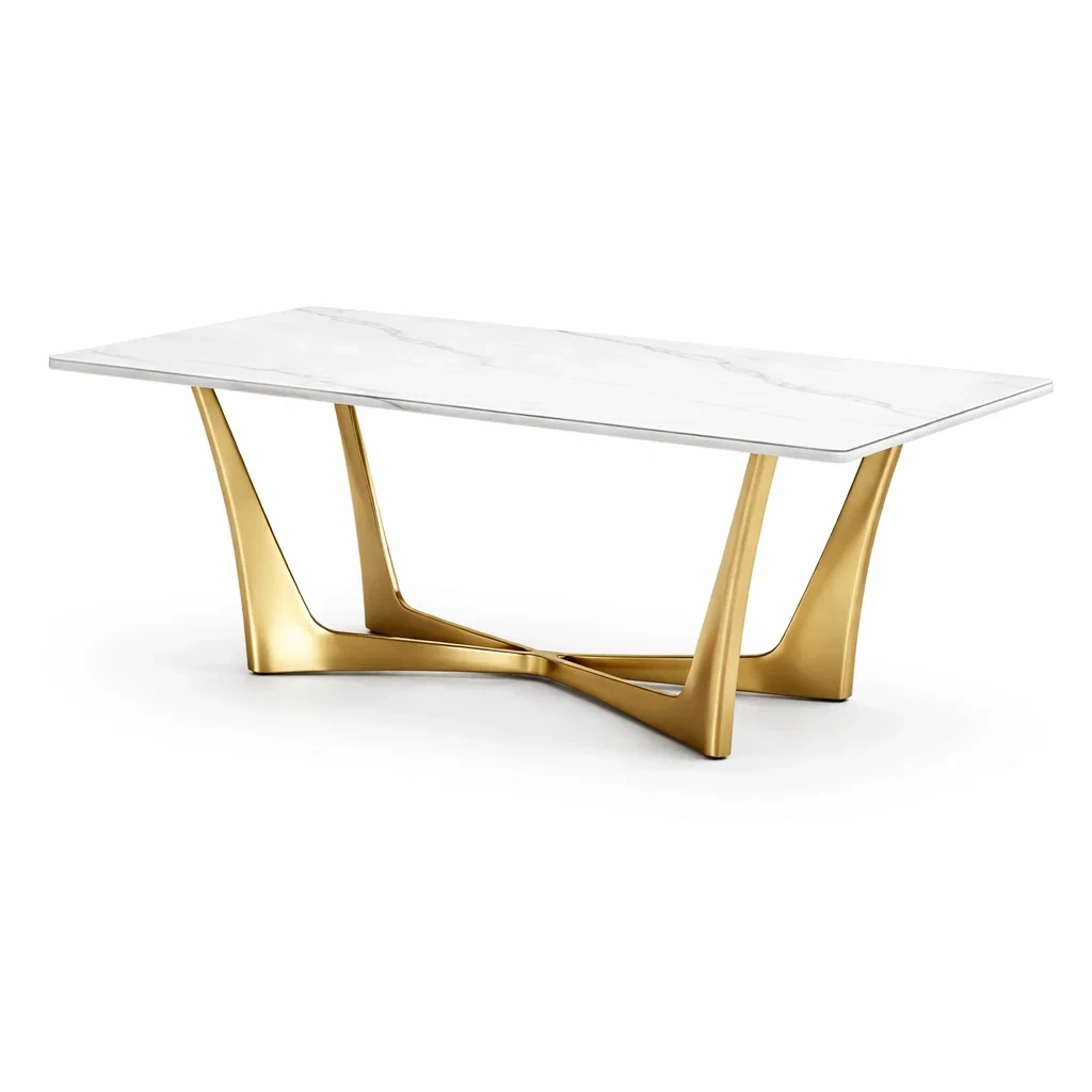 Table basse en marbre blanc avec piètement en métal doré